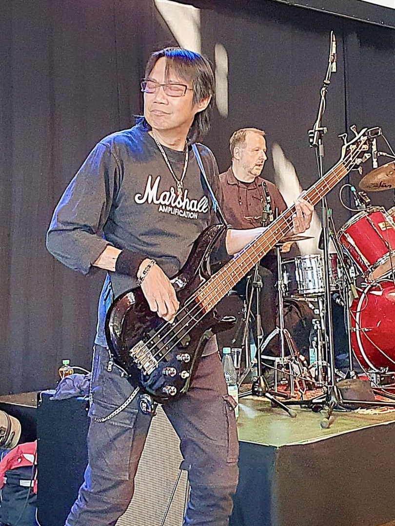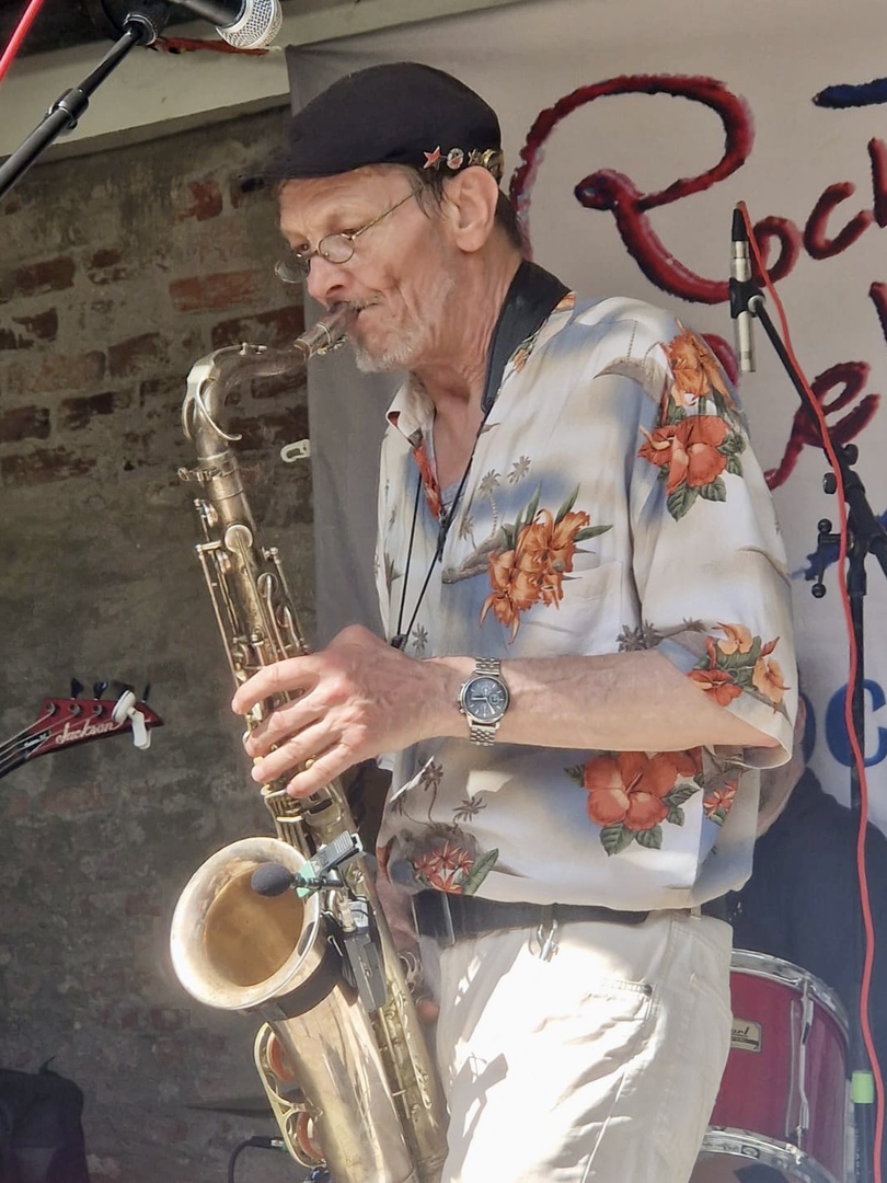 singt u. bläst auf allen Instrumenten die ihm zur Verfügung stehen